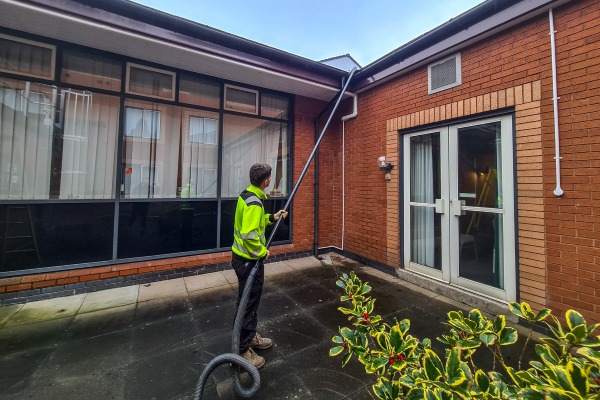 Outdoor areas of care homes can quickly accumulate dirt, moss, algae, and general environmental build up. Our pressure washing services restore pathways, patios, entrances, and other hard surfaces using professional equipment. This process improves the appearance of the property while also reducing slip hazards caused by moss or algae. Clean outdoor areas are especially important where residents regularly use gardens and walkways. Our team works carefully to protect surrounding areas and minimise disruption, leaving external spaces cleaner, safer, and more welcoming for residents, staff, and visitors.